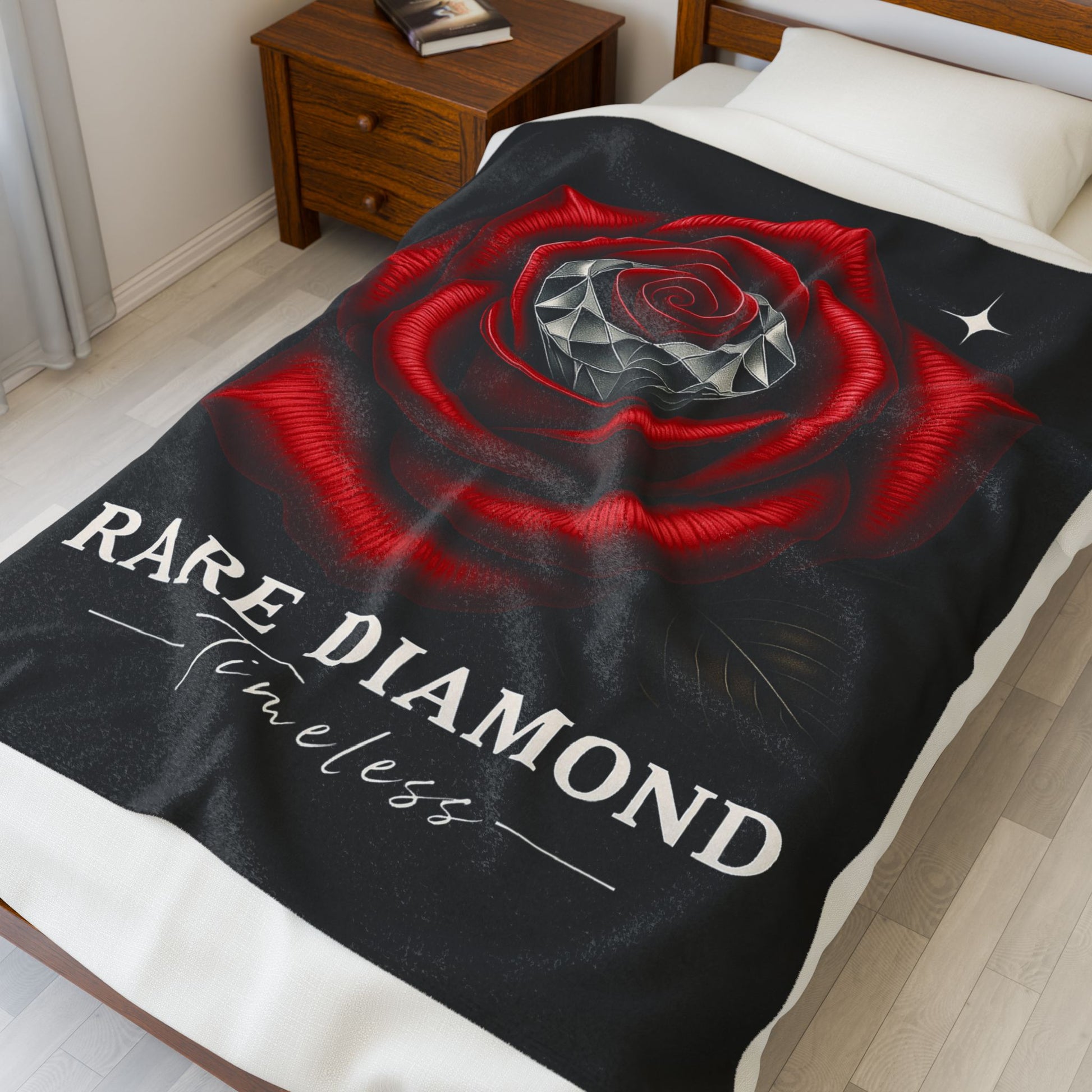 Rare Diamond Rose Velveteen Plush Blanket, Cozy Gift for Her, Valentine’s Day, Home Decor, Timeless Soft Throw